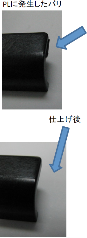 本来はPLが無い事が望ましいのですが、成形品の機能上どうしても必要な形状や、型製作上、どうしても分割せざる得ない場合もあるため、成形品にPLのための、段差やバリが発生いたします。