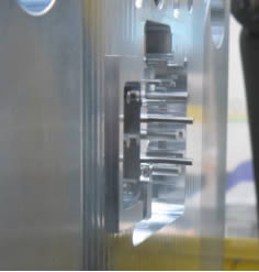 まず試作金型加工ですが、成形品にフィレット(加工R)を大きく付けられない時、その内側だけワイヤー放電加工でコマを作り、金型に組み込みこんでいます。